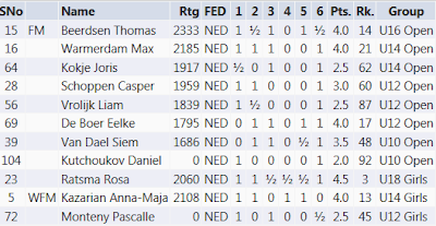 Met 4.5 uit 6 is Rosa Ratsma (EK 18) tot nu toe de beste speler van het Nederlandse team. In ronde 7 na de rustdag zit zij met wit op bord 2 tegen Polina Rodionova uit Rusland.
